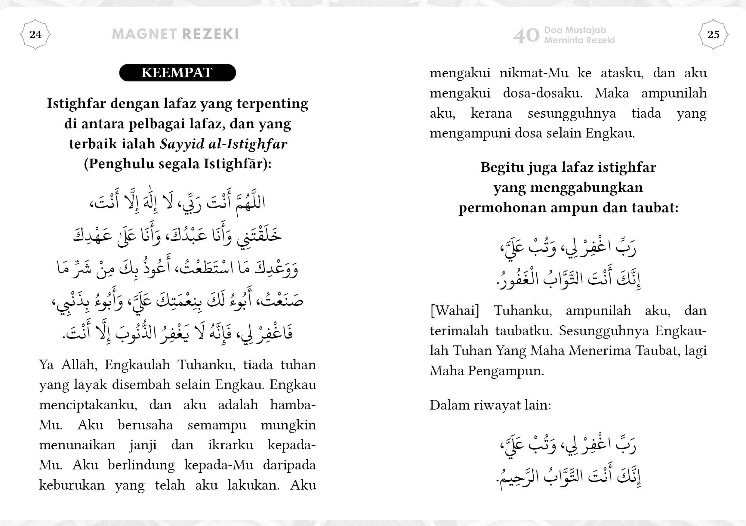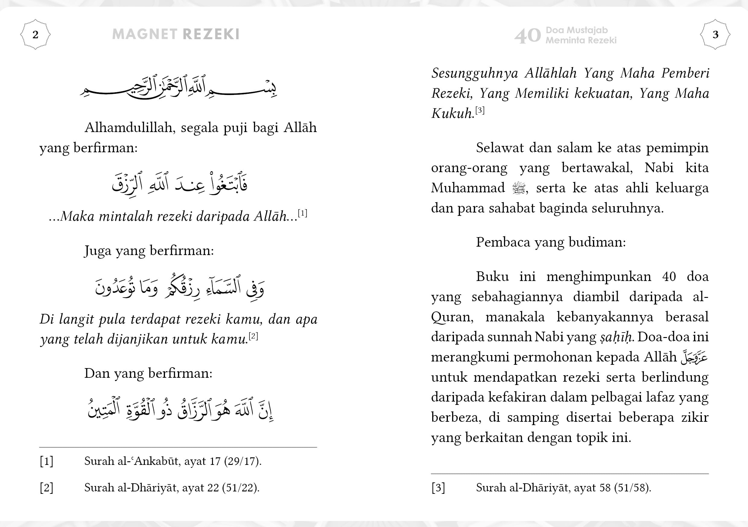 Koleksi 40 Doa Mustajab Meminta Rezeki daripada al-Quran dan al-Sunnah.